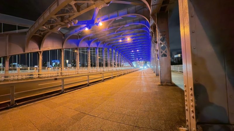 DJI Osmo Nanoは全体を明るめに補正する傾向があり、暗部も見やすく写ります。色味はやや淡く表現され、柔らかく雰囲気ある夜景に。
