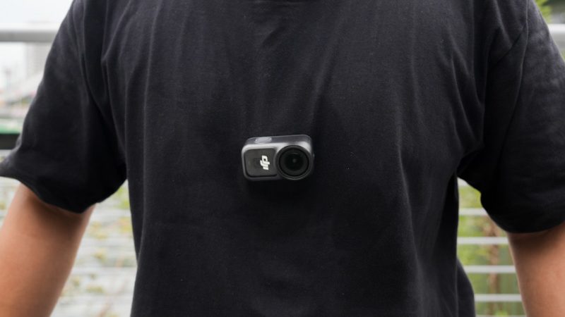DJI Osmo Nano はカメラ部分に「DJI」という白い文字が入っており、装着すると意外と目立ちやすいと感じました。人目のある場面で使うときには、少し視線を集めやすいかもしれません。