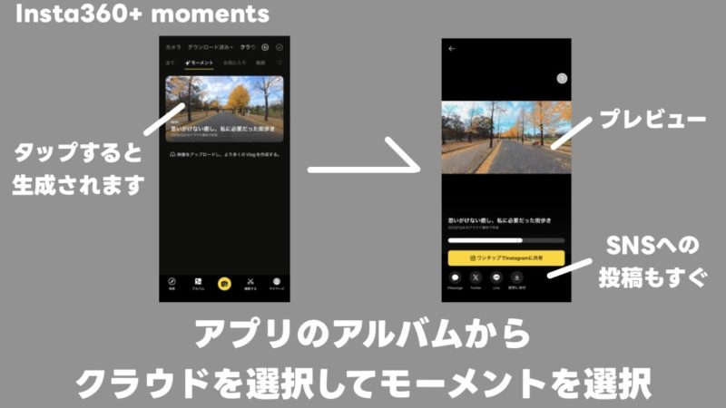 Insta360+に、新しく「Moments(モーメント)」という機能が追加されました。