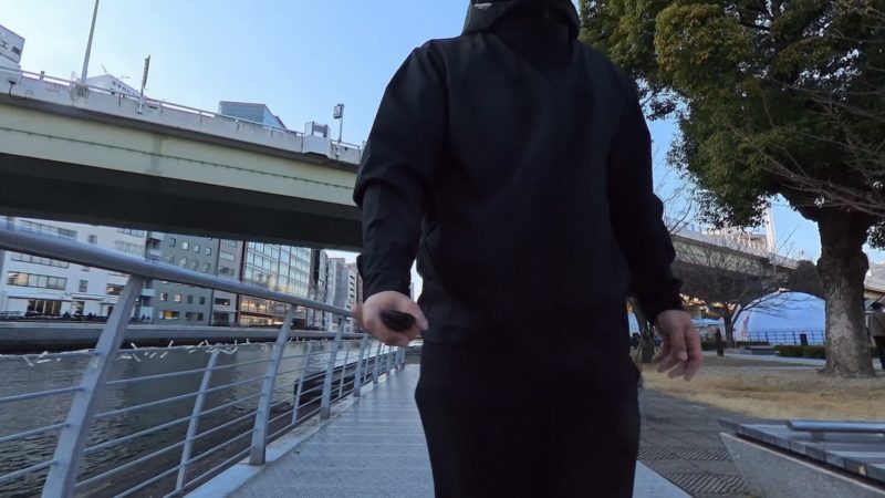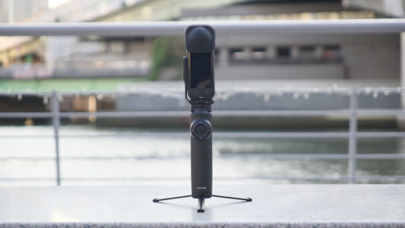 フリーフレーム自撮り棒は、自撮り棒として伸ばして使えるのはもちろん、ミニ三脚として置いて撮影することもできるため、「見えなくなる自撮り棒」としての使い方は、これまでのInsta360アクセサリーと同じ感覚で使えました。