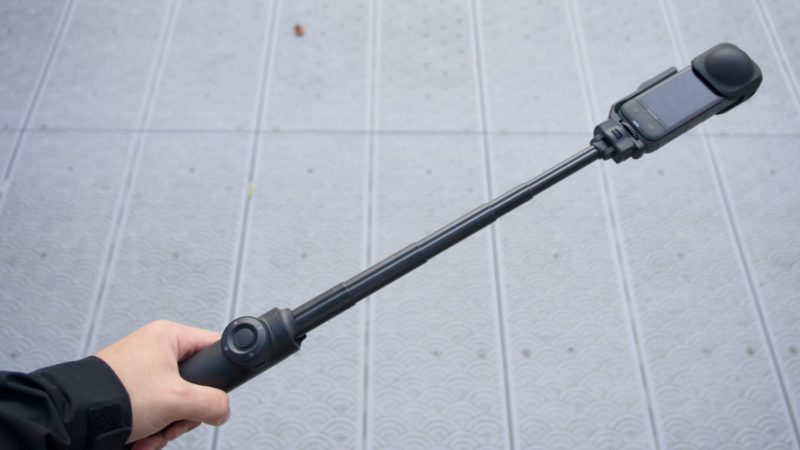 ただし、クイックリリースマウントによって着脱が簡単なため、X5本体とフリーフレーム自撮り棒を分けて持ち運ぶといった運用がしやすく、使い方次第でこの点はカバーできる印象でした。